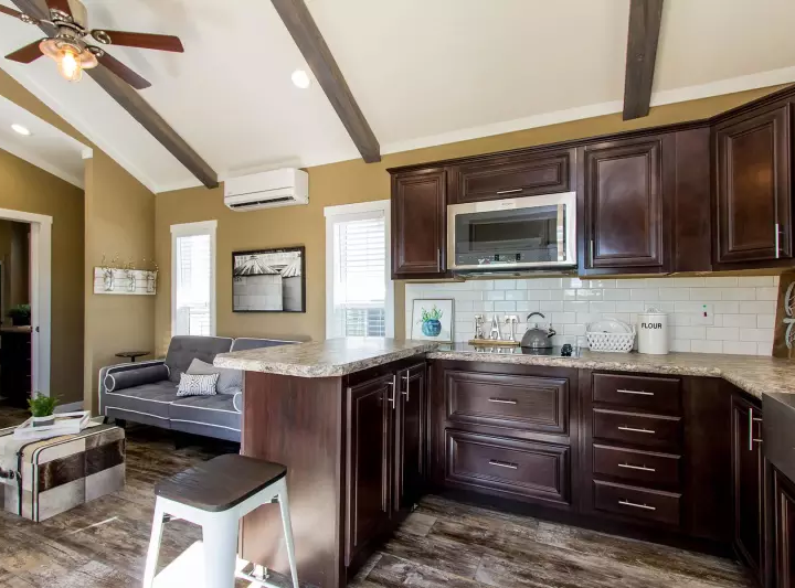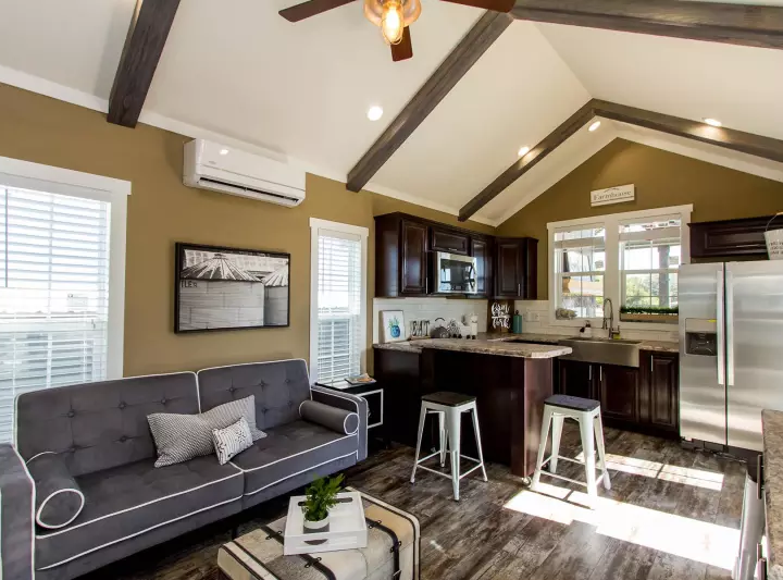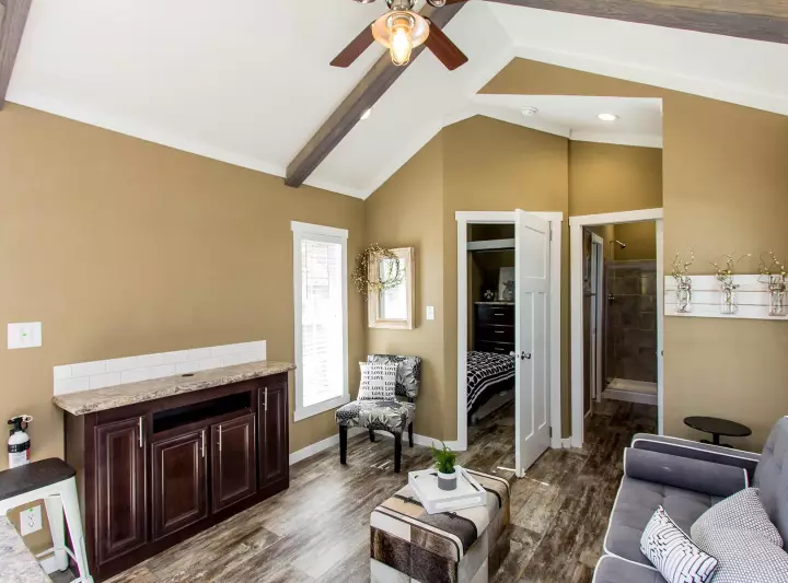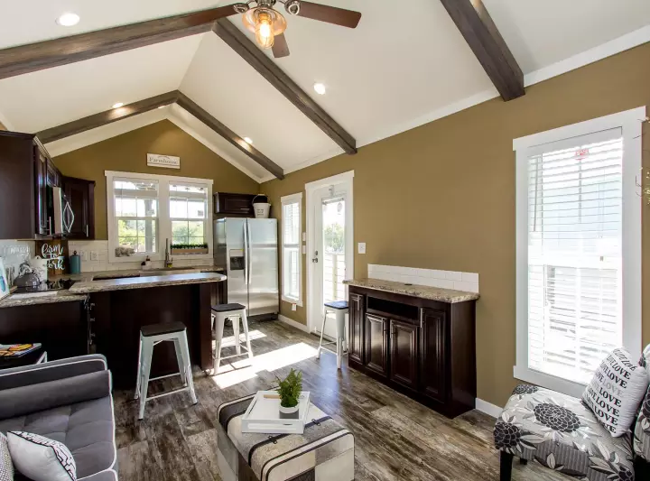 This park model RV features 399 square feet of living space, …with a wonderful modern style.