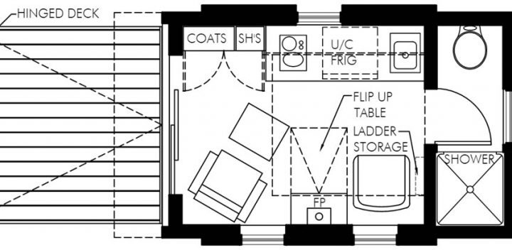 The Centipede (sen-tuh-peed), known for its common name of “100 legs” defines this travel trailer or tiny home by the square foot alone. Don’t let its size fool you because this 100 square foot tiny home offers a hinged deck with swinging glass entry doors, giving you the chance to sit and stare all day or night long!