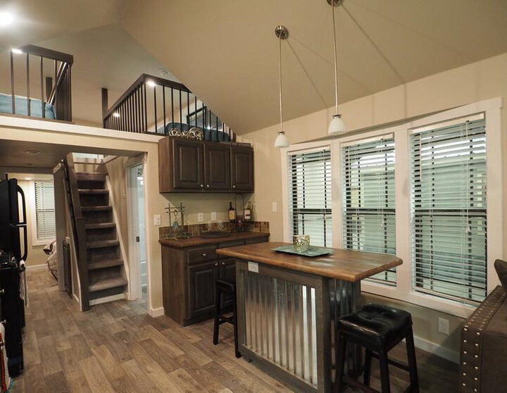 Galley Kitchen with large island bar and loft.