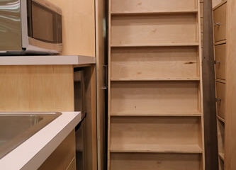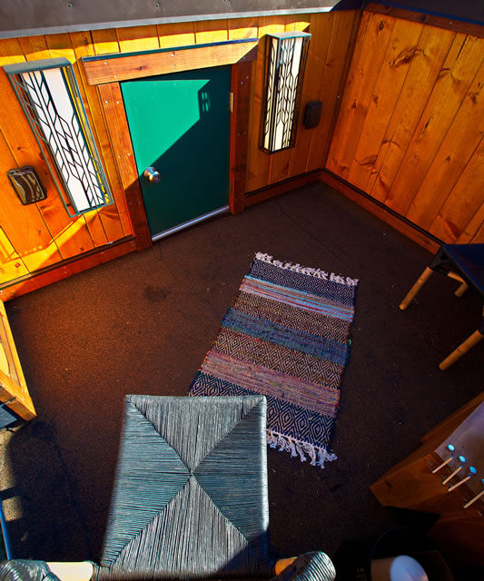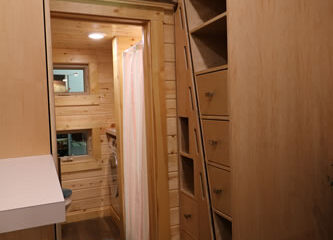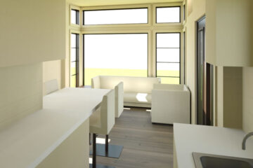 The enclosed roof deck is elevated to give you that observation feel, taking in the unobstructed view of the skies above. This deck is easily accessible by the iron ladder attached to the back of the home and easily opened to enjoy the starry skies. This tiny home offers all of the needed amenities of living comfortably, including a combination washer and dryer, full size refrigerator, and a 60″ tub for relaxation after a long day. With all the natural light coming in to this tiny home, it’s no wonder that people are falling in love with this design. Its crazy shape and design is giving the Schooner its own unique view in the tiny home world.