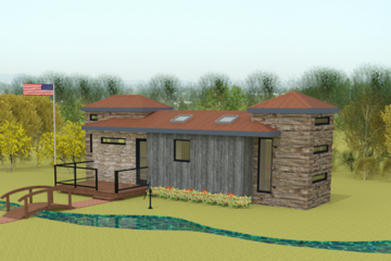 This 200 square foot tiny home is very spacious with slanted interior walls and sunken roof deck. However, don’t let the outside fool you, the interior is just as intriguing with its full size bathroom, stairs, and two upper lofts to enjoy the stars at night.